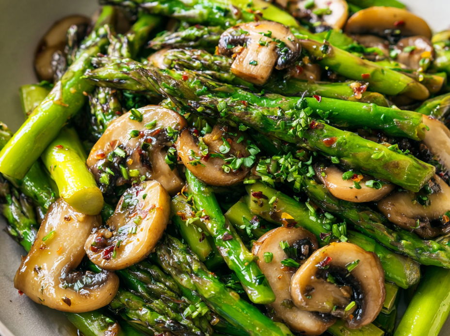Cook mushrooms first until deeply caramelized, then add asparagus to keep their crunch. Timing is everything.