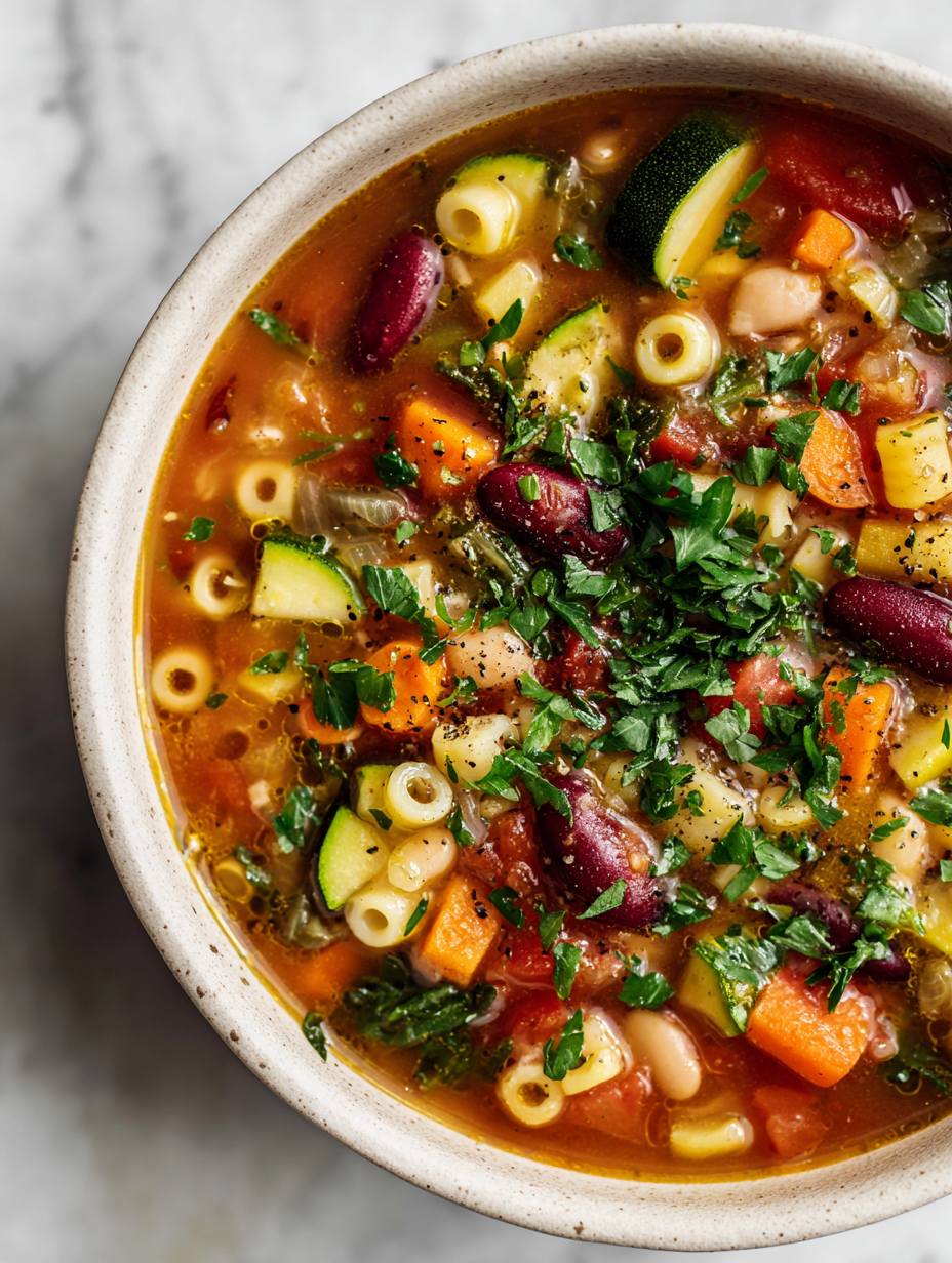 This minestrone soup is my go-to on busy days when I crave something nourishing without the fuss. The slow cooker turns everyday ingredients into something deeply flavorful, with that comforting, home-cooked smell filling the house. It’s a reminder that simple, honest cooking can be both practical and satisfying.