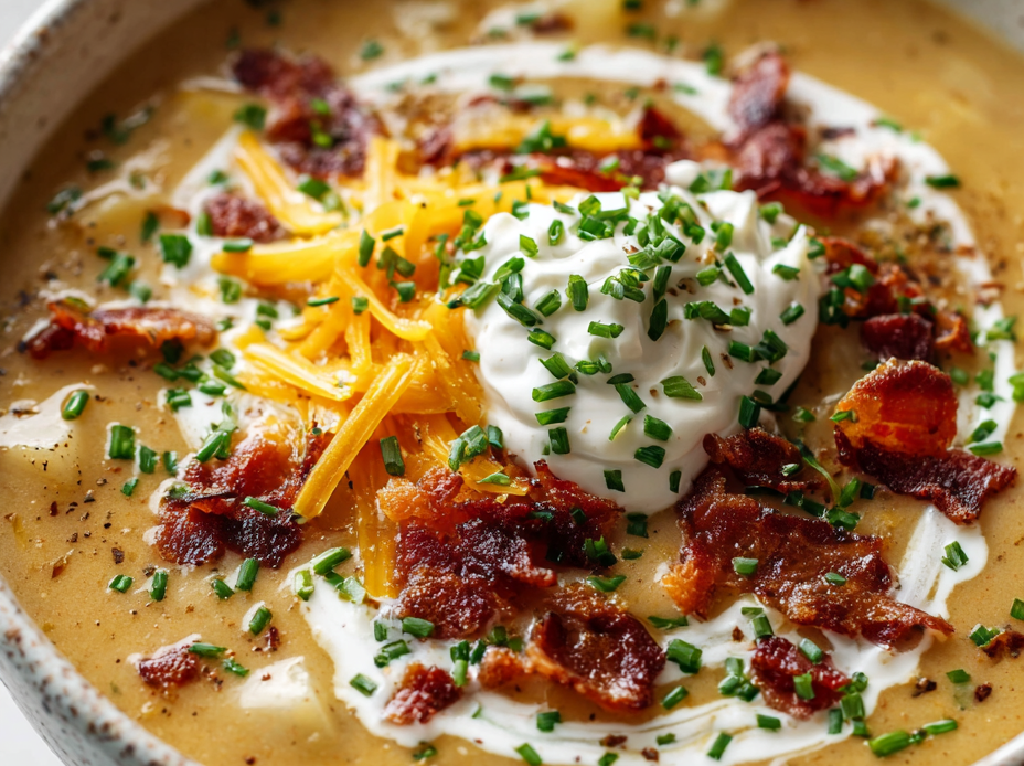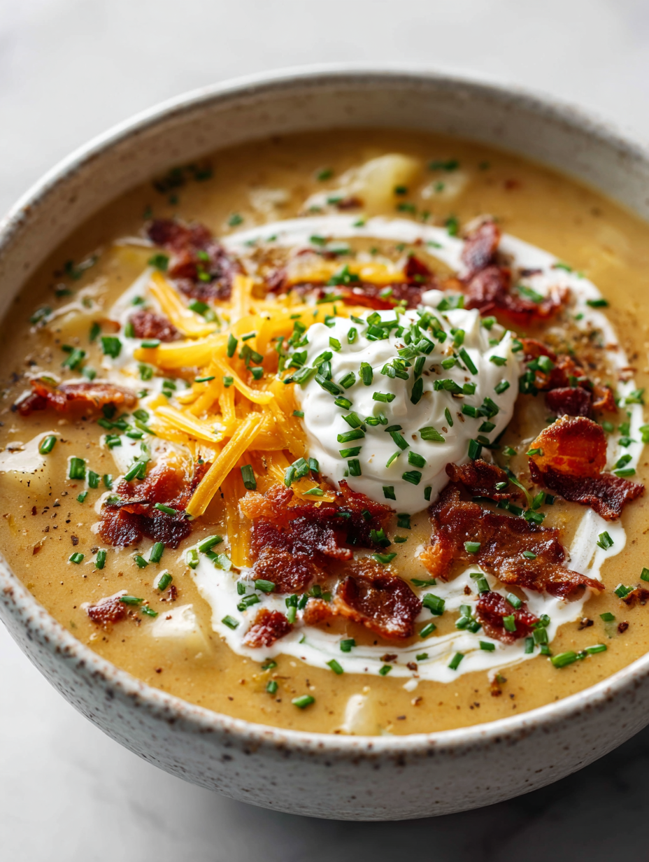 - Finish with toppings like crispy bacon bits, shredded cheese, chopped chives, or a dollop of sour cream. Serve hot, with crusty bread on the side.