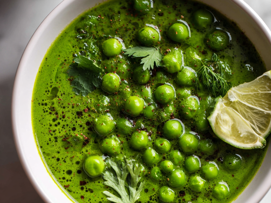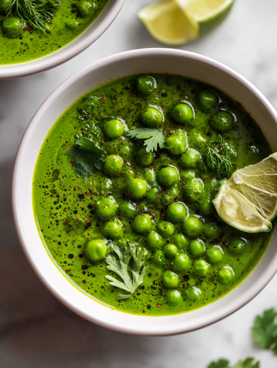 This vibrant green pea curry features tender peas simmered gently in a rich coconut milk base infused with warming spices. The final dish boasts a velvety texture and an eye-catching, lively green hue, making it both visually stunning and refreshingly flavorful. Perfect for a quick, comforting meal that celebrates the freshness of peas.