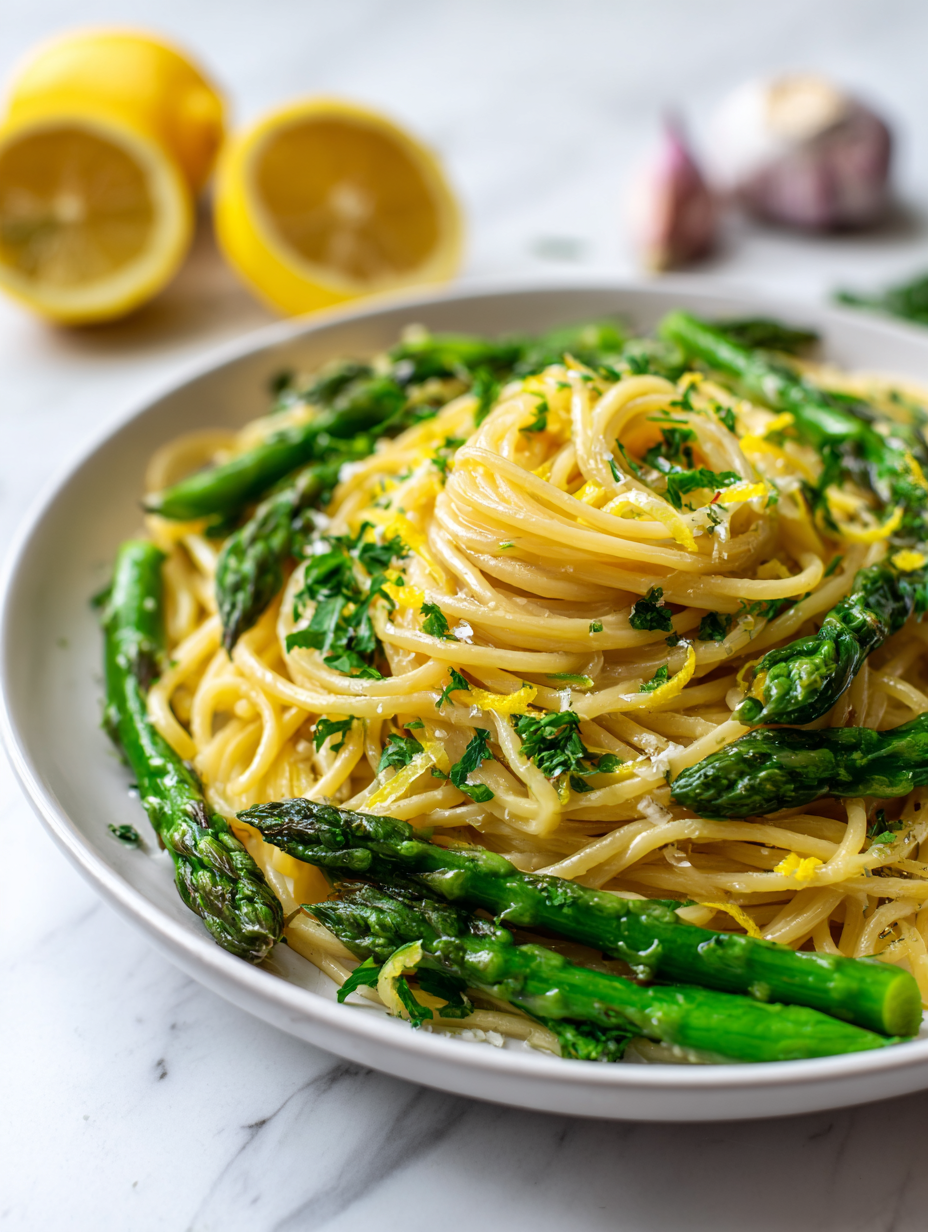 - Transfer the pasta to serving plates, garnishing with extra lemon zest and a few whole asparagus tips for visual appeal. Serve immediately while hot and fragrant.