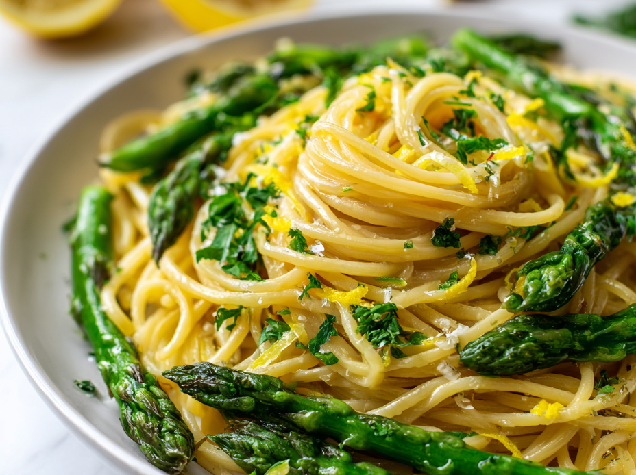 - Transfer the pasta to serving plates, garnishing with extra lemon zest and a few whole asparagus tips for visual appeal. Serve immediately while hot and fragrant.