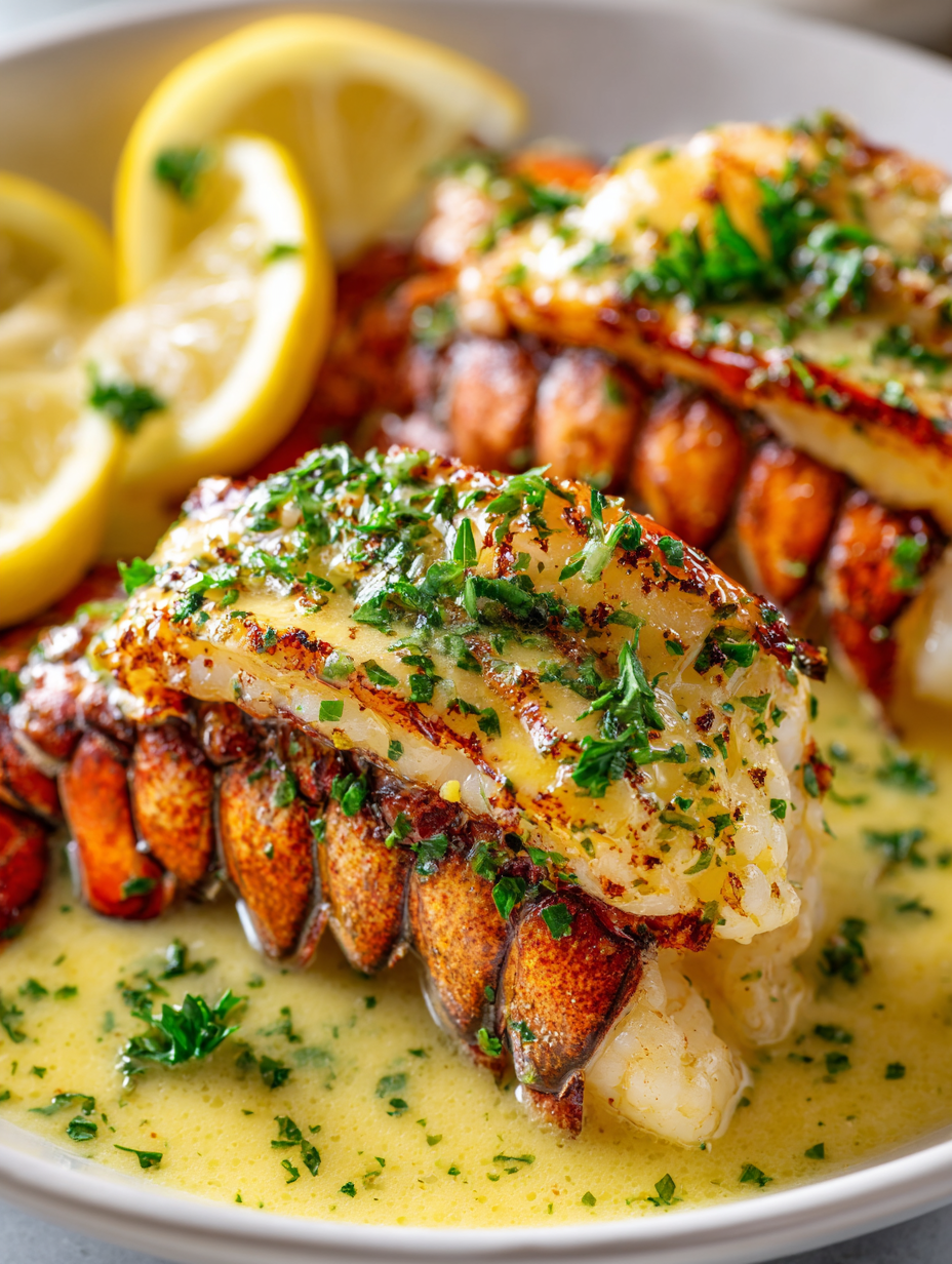 - Remove the lobster tails from the skillet and transfer to a plate. Garnish with freshly chopped parsley and a squeeze of extra lemon if desired.