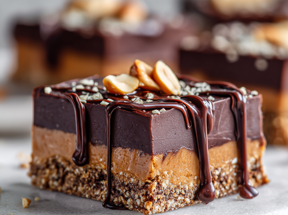 These no-bake chocolate peanut bars come together quickly using pantry staples like peanut butter, honey, oats, and dark chocolate. The mixture is pressed into a pan, chilled until firm, and then sliced into crunchy, gooey bars with a rich, salty-sweet flavor and a glossy chocolate finish. Perfect for a satisfying, mess-free treat that’s both nostalgic and customizable.