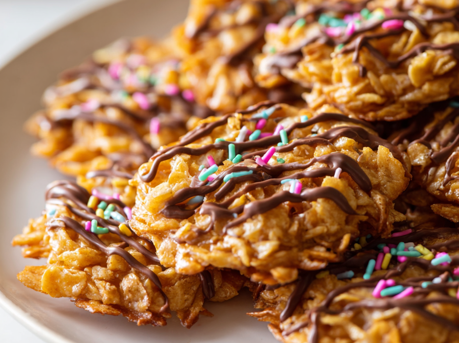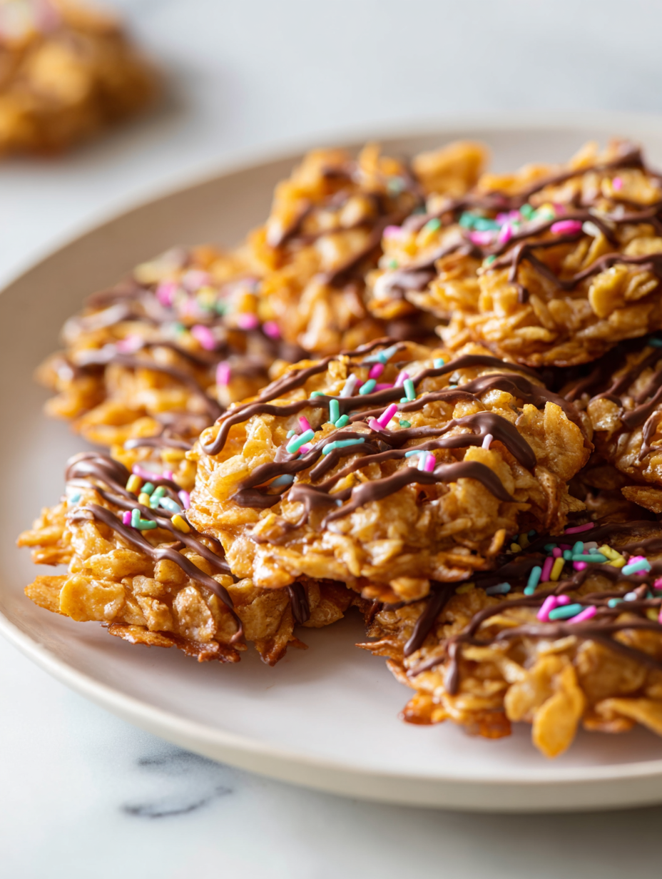 This no-bake cornflake cookies are quick, nostalgic treats made by melting butter and marshmallows together, then mixing in crunchy cornflakes until coated. Once set, they develop a glossy, crackled exterior with a chewy marshmallow center and crispy edges, perfect for a simple, satisfying dessert without any oven time.