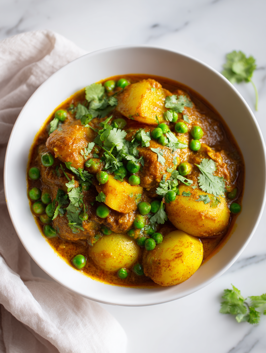 • It’s also a nod to childhood days spent in my mother’s kitchen, where a humble pot of potatoes and peas was often the dinner after a long day. I love how this dish balances that nostalgic comfort with a touch of spice and a splash of freshness. Every time I make it, I remember those lazy weekends and the quiet joy of a simple, filling meal that’s easy to throw together and impossible to mess up.