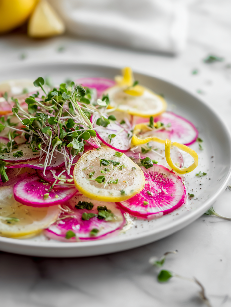 - Serve immediately to enjoy the crisp texture and bright, peppery flavor of the radishes, complemented by the zesty lemon dressing.
