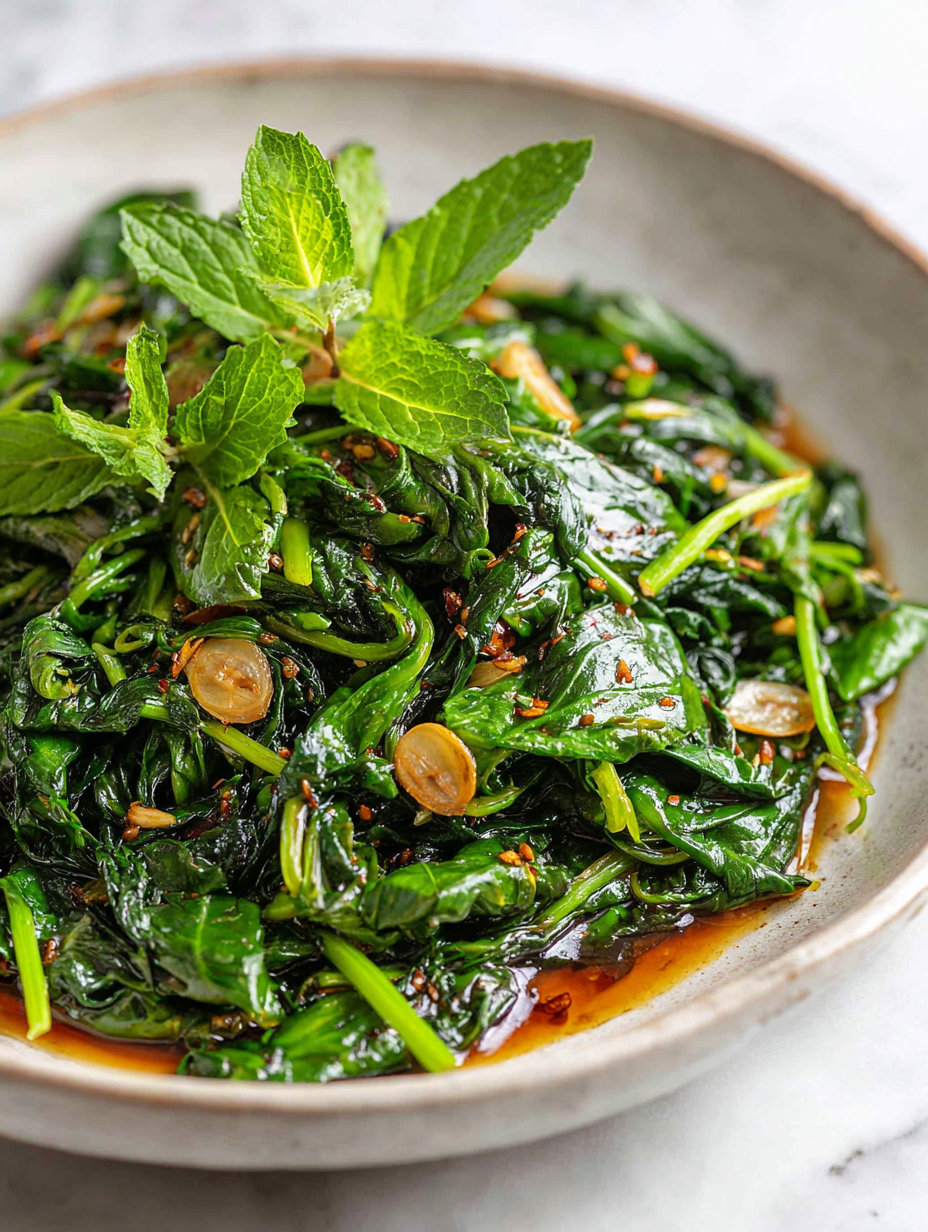 What makes this dish special isn’t just the ease — it’s how it reminds me to slow down and appreciate the humble. Spinach, often overlooked, transforms into something glossy and fragrant with garlic. It’s a tiny act of mindfulness, turning everyday produce into a moment of calm and satisfaction in my busy life.