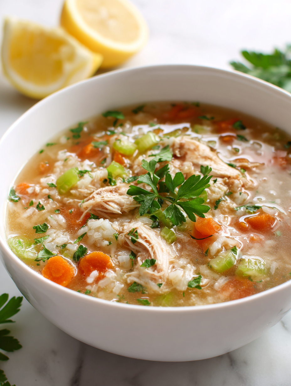 - Rest & Plate: Let sit for 5 minutes, then ladle into bowls. The soup should be steaming, with tender rice and juicy chicken ready to warm your hands and heart.