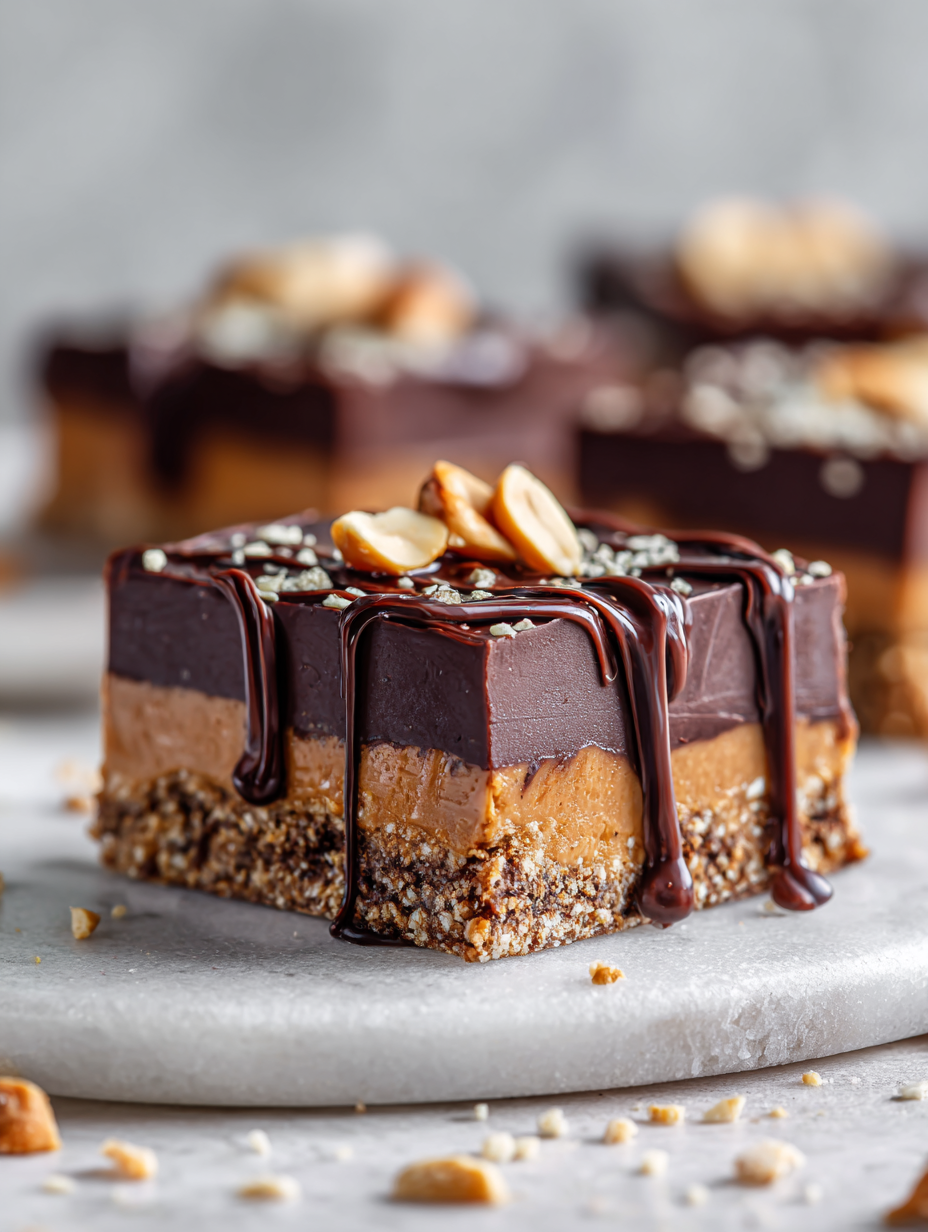 These no-bake chocolate peanut bars come together quickly using pantry staples like peanut butter, honey, oats, and dark chocolate. The mixture is pressed into a pan, chilled until firm, and then sliced into crunchy, gooey bars with a rich, salty-sweet flavor and a glossy chocolate finish. Perfect for a satisfying, mess-free treat that’s both nostalgic and customizable.