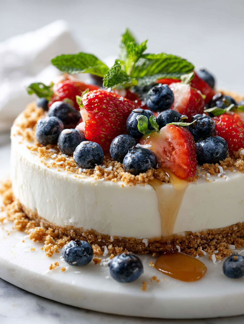 This cheesecake is a testament to how simplicity in the kitchen can yield something surprisingly elegant. I love that it requires no oven, making it perfect for those hot summer days when turning on the stove feels like a crime. Plus, the tangy Greek yogurt adds a fresh, creamy twist that feels like a little rebellion against overly sweet desserts.