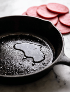 • Bologna should sizzle when it hits the pan, not steam or hiss loudly.