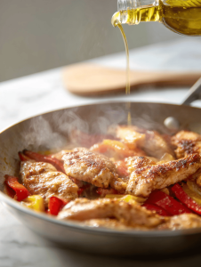 • Olive oil: A good splash brings richness and helps sauté without burning.