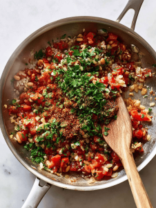 • Onions and garlic: Builds depth. Sauté until fragrant and translucent.