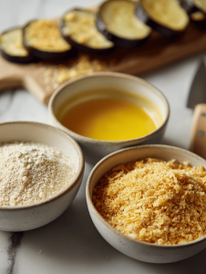 3. Set up three shallow bowls: one with beaten eggs, another with seasoned breadcrumbs mixed with Parmesan, and the last with grated Parmesan cheese.