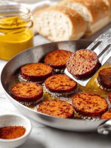 This fried bologna sandwich features slices of savory bologna cooked until crispy in a hot skillet, then layered on toasted bread with tangy mustard, crunchy pickles or onions, and optional melted cheese. The result is a satisfying combination of crispy edges, smoky aroma, and juicy, flavorful bites, with textures that are both crunchy and tender.