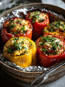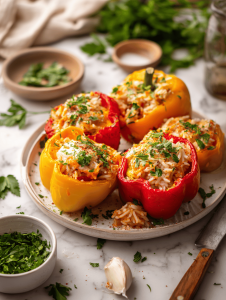 Stuffed peppers have a humble origin, but they carry an unpretentious charm that’s hard to beat. This recipe takes a slightly unconventional approach—using lemon zest and herbs for a fresh, zesty punch. It’s about turning simple ingredients into something satisfying and bright. Perfect for a weekday dinner that feels like a little celebration.