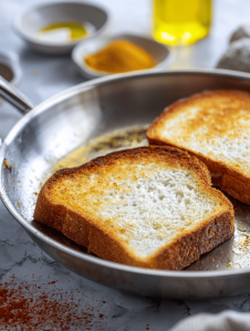 Step 4: While the bologna crisps, toast your bread slices until they’re just golden, about 1-2 minutes.