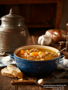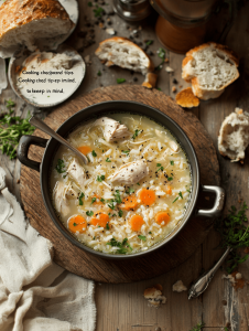 - Cover the pot partially and let it simmer quietly for about 1 hour, stirring occasionally. The chicken should become tender and start to fall apart, and the broth will develop a rich, savory aroma.