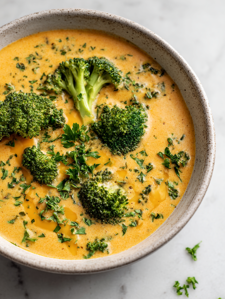 This creamy vegan broccoli cheddar soup uses blended cashews and nutritional yeast to mimic the richness of traditional cheese, resulting in a velvety, comforting dish. Tender, slightly caramelized broccoli adds natural sweetness and vibrant color, with a smooth, cheesy texture that makes it ideal for cozy days. The soup is finished with fresh herbs and optional heat, making it both indulgent and wholesome.